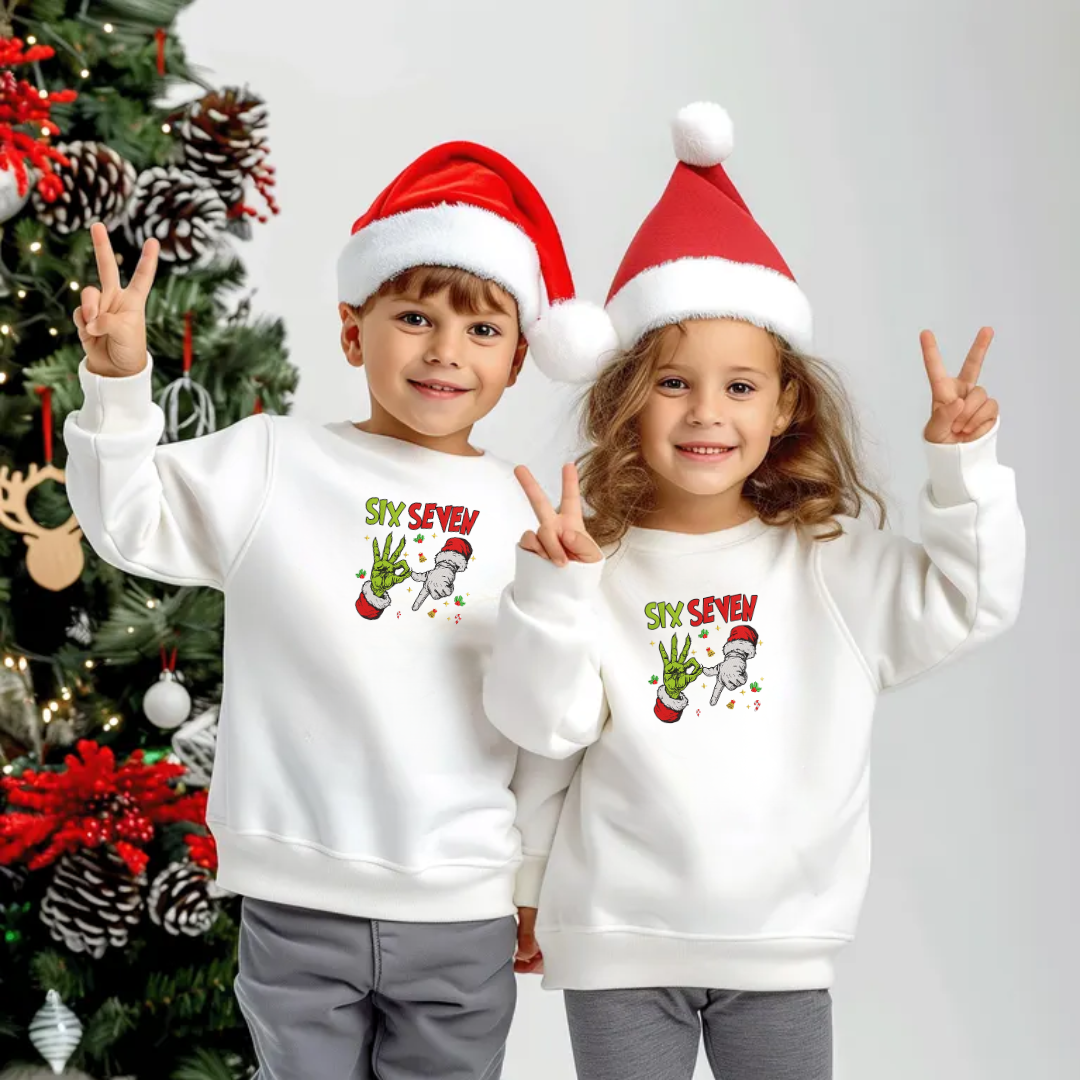 Six Seven Kids Sweatshirt — Viral “67” Trend Holiday Crewneck