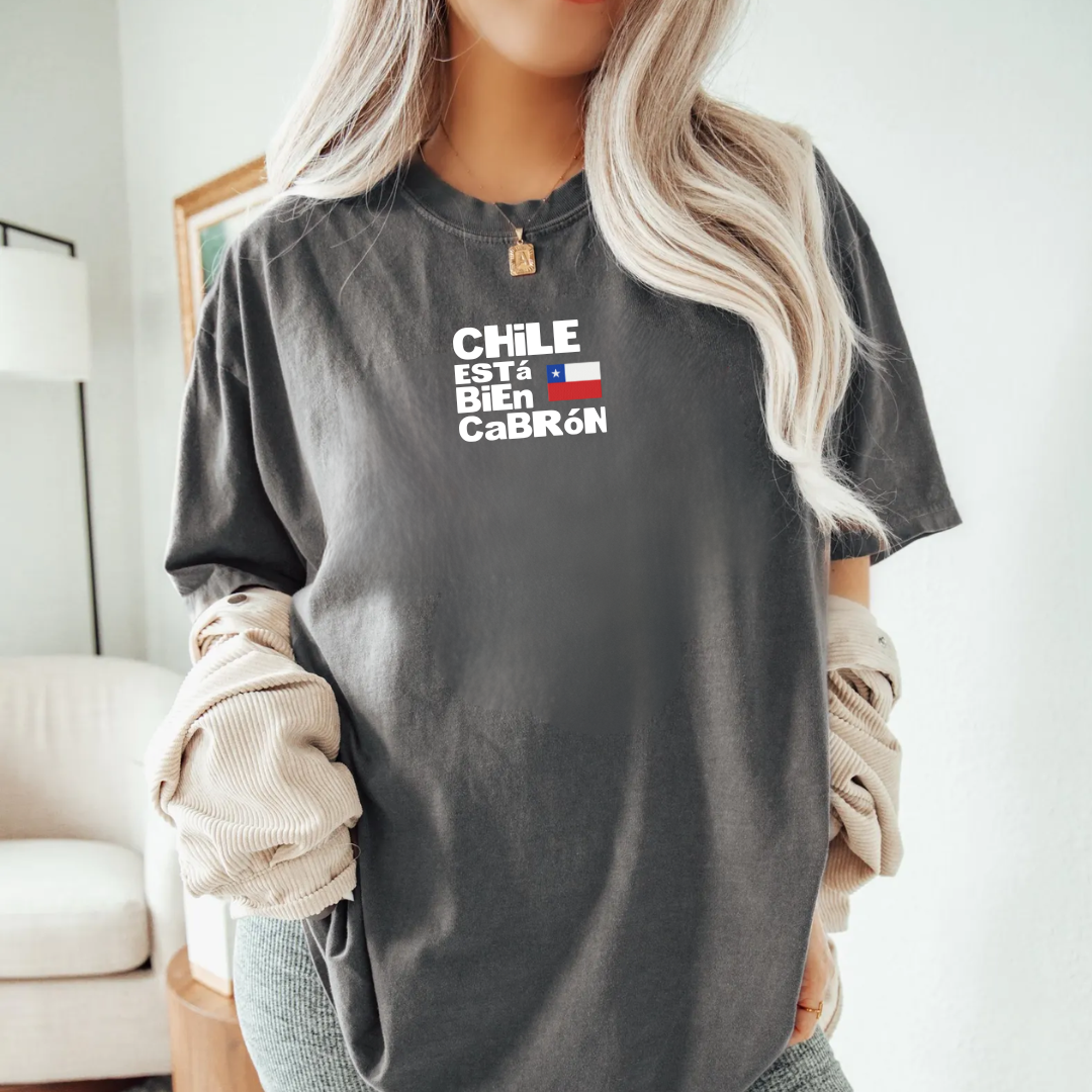 Celebrate Bad Bunny’s world tour in style with this embroidered statement tee! Each shirt features " Chile ESTá BiEn CaBRóN” stitched on the chest alongside the country’s flag for a bold, eye-catching look. Perfect for concert nights, everyday wear, or as a unique gift for any Bad Bunny fan.