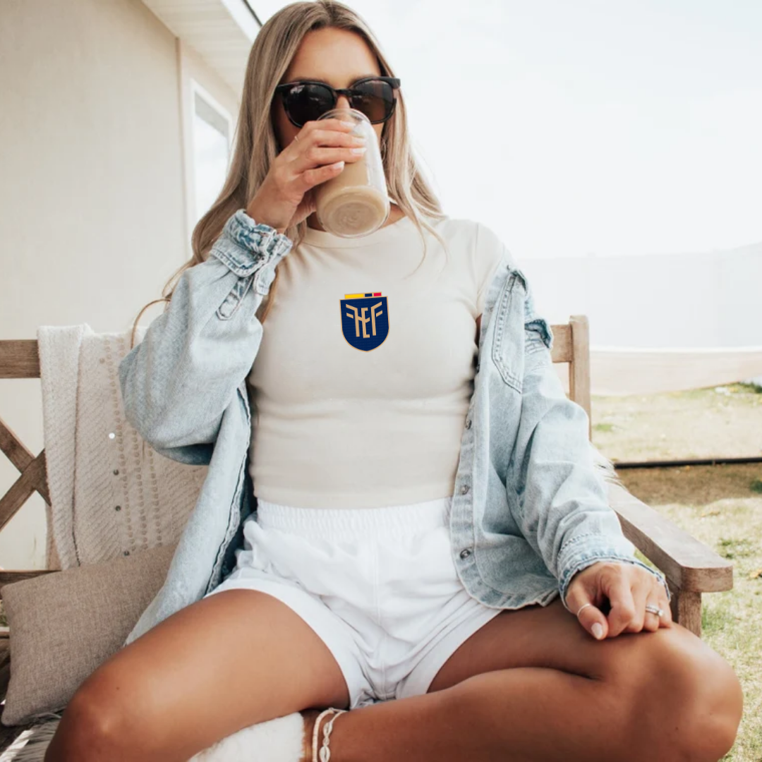 Part of our exclusive World Cup Collection, this fitted baby tee features a detailed Ecuador national team–inspired crest embroidered at the center of the chest for a clean, powerful, and instantly recognizable look.